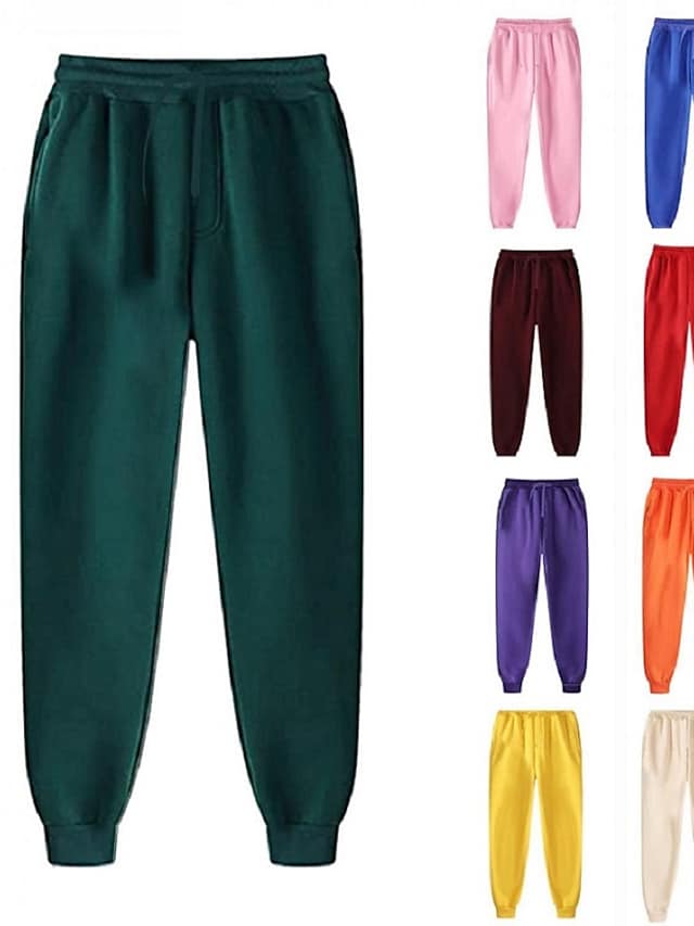 mens fleece sweatpants Active jogger pant with side pocket heavyweight Joggers solid color Trousers elastic waist Drawstring brushed casual pants Workout Pants