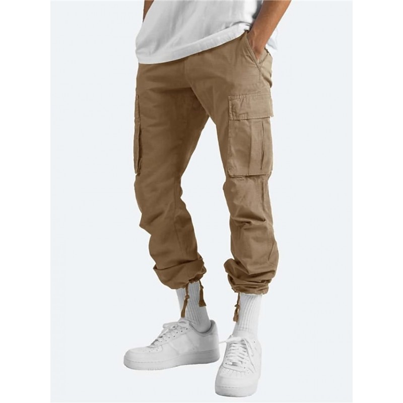 Men's Straight Trousers Parachute Pants Multi Pocket Solid Color Comfort Breathable Pants Casual Daily Fashion Streetwear Green Black