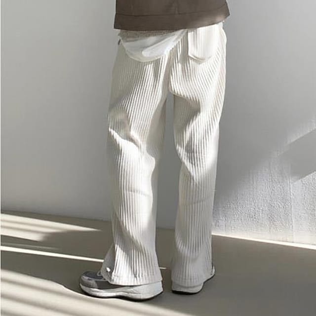Men's Straight Wide Leg Trousers Pleated Drawstring Solid Color Breathable Soft Pants Sports Outdoor Daily Corduroy Streetwear Stylish Loose Fit White Micro-elastic