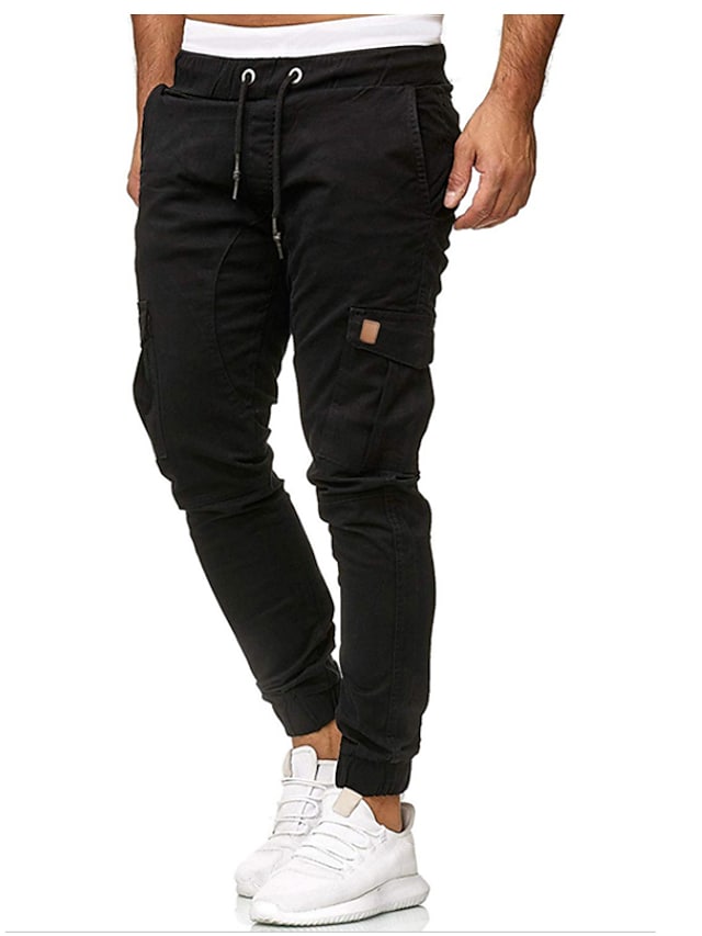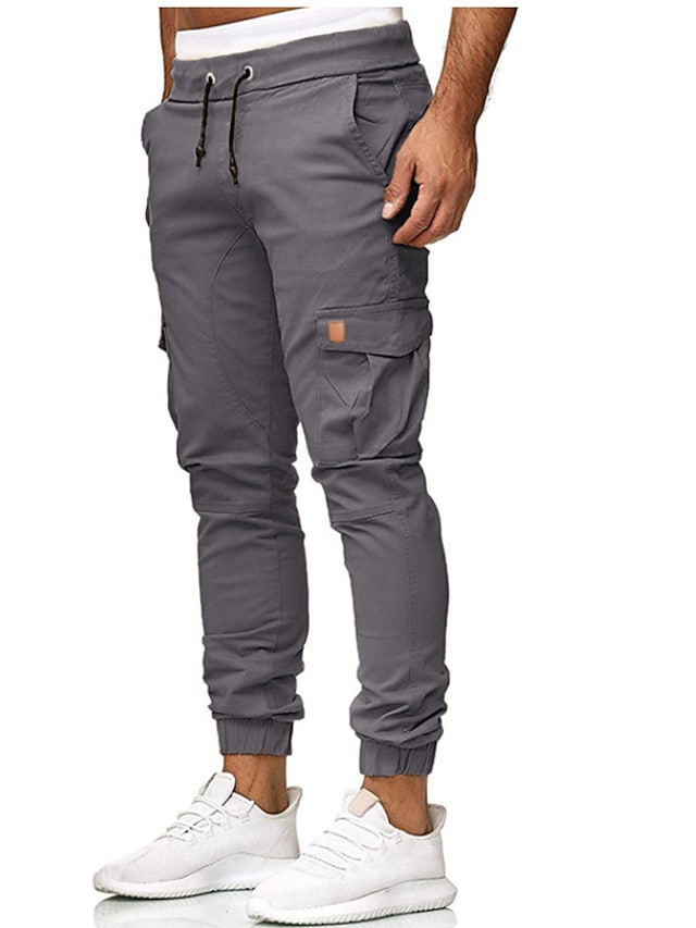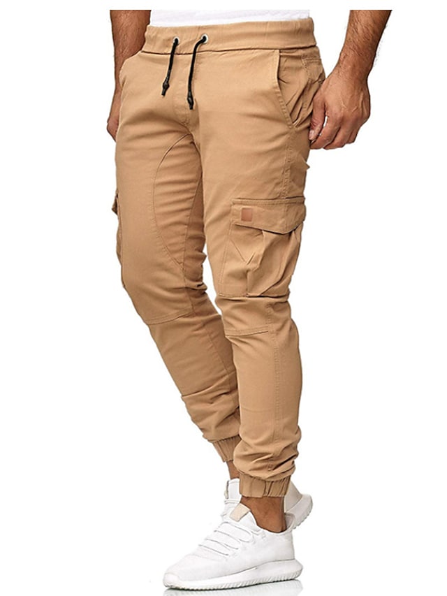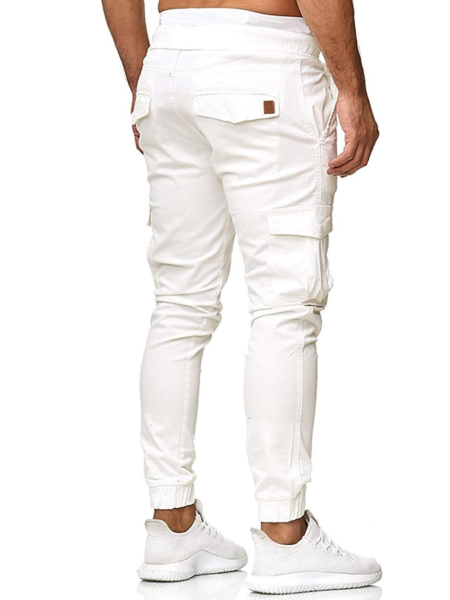 Men's Streetwear Jogger Chinos Sweatpants Elastic Waistband Drawstring Multi Pocket Full Length Pants Micro-elastic Solid Colored Cotton Mid Waist White Black Gray Army Green Khaki S M L XL XXL