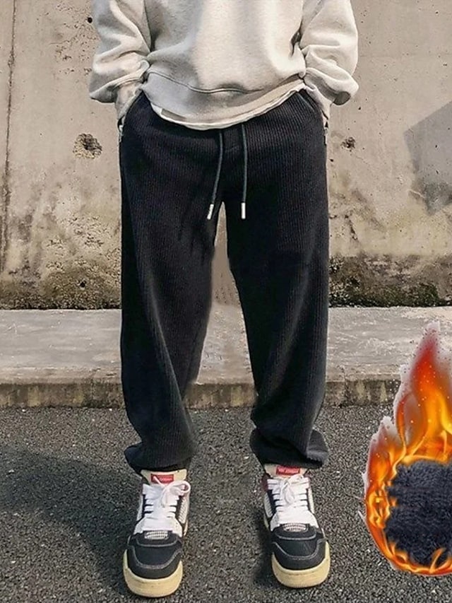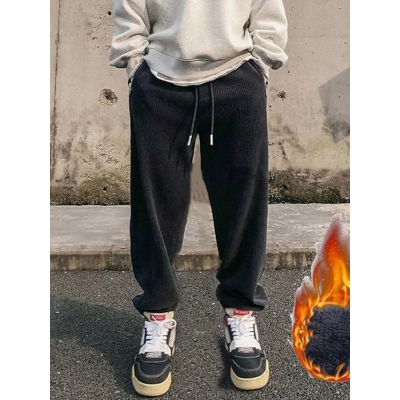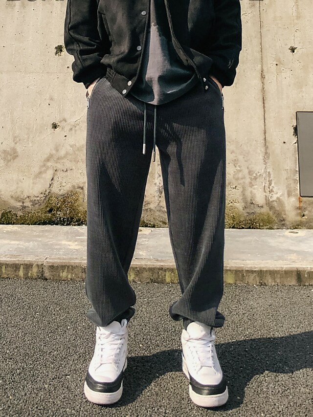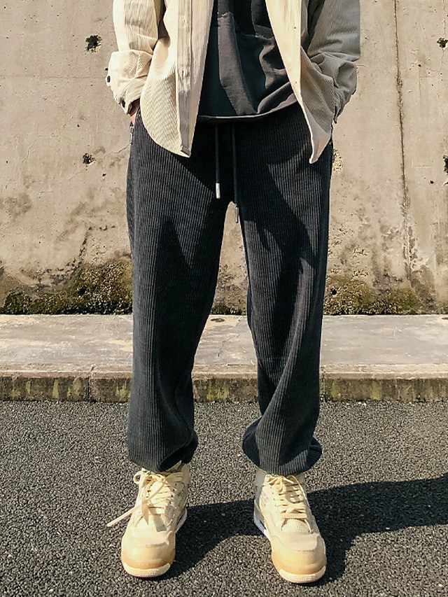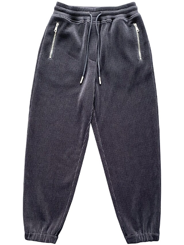 Men's Sweatpants Joggers Trousers Drawstring Elastic Waist Solid Color Comfort Breathable Pants Casual Daily Corduroy Sports Fashion Black Grey Micro-elastic / Elasticity