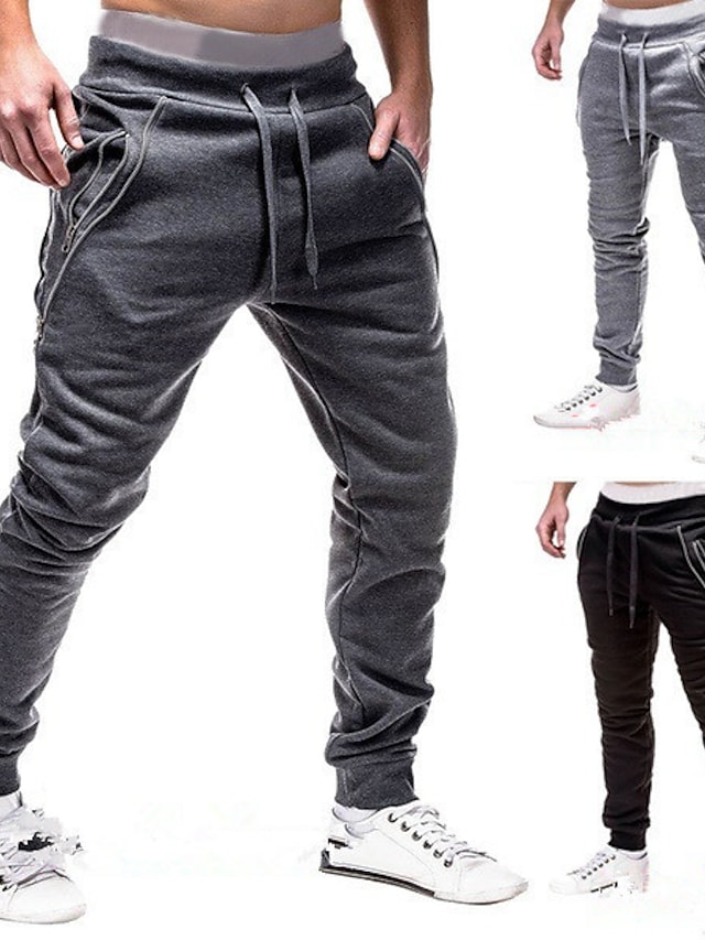 mens sweatpants With Zipper Pockets fashion jogger sports pants trousers long pants Running Jogging lightgray