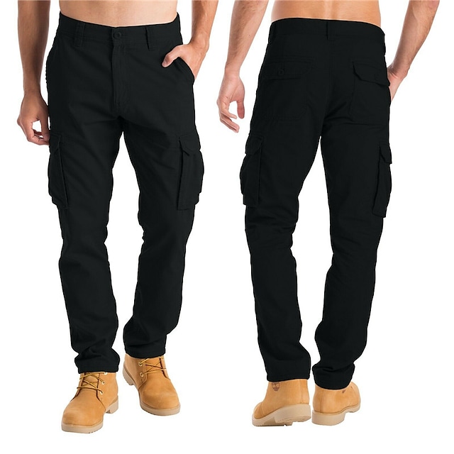 Men's Trousers Cargo Pants Multiple Pockets Solid Color Comfort Breathable Pants Casual Daily Fashion Streetwear Black Gray