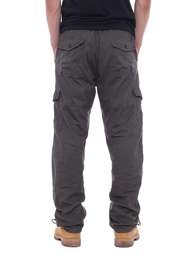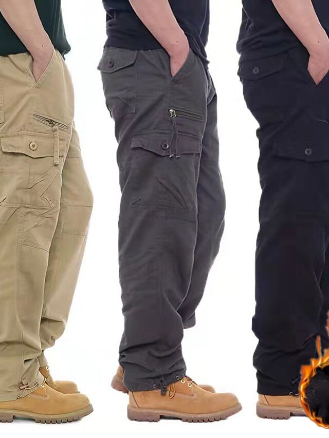 Men's Trousers Work Pants Winter Pants Zipper Multiple Pockets Solid Color Comfort Breathable Pants Casual Daily Fashion Plus velvet ArmyGreen Black Micro-elastic