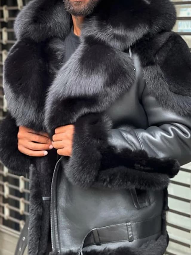 Men's Faux Leather Jacket Casual Outdoor Daliy Street Fall Winter Regular Coat Thermal Warm Windproof Breathable Streetwear Sporty Casual Jacket Long Sleeve Solid Color Pocket Black