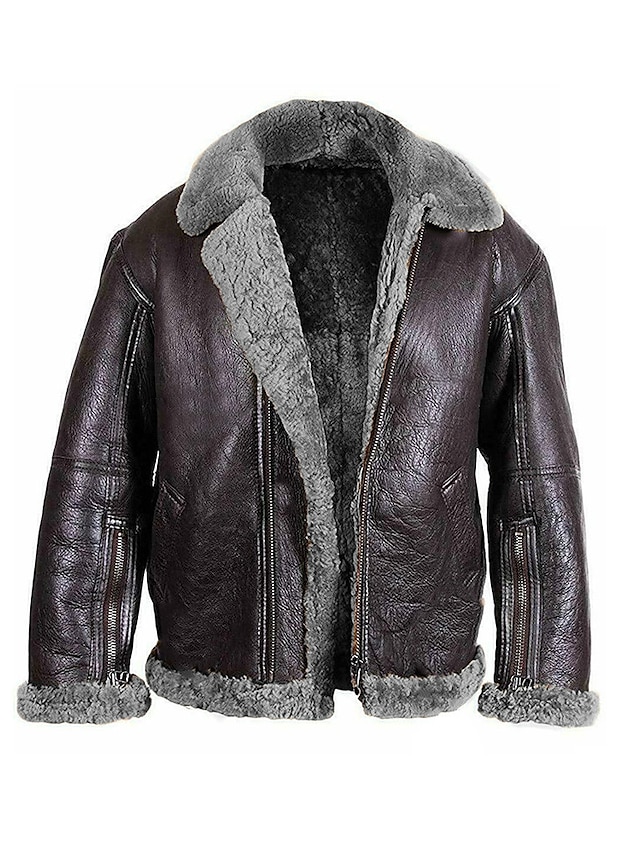 Men's Jacket Outdoor Street Daily Fall Winter Regular Coat Regular Fit Thermal Warm Windproof Breathable Streetwear Sporty Casual Jacket Long Sleeve Solid Color Pocket Black Gray Brown / Faux Leather