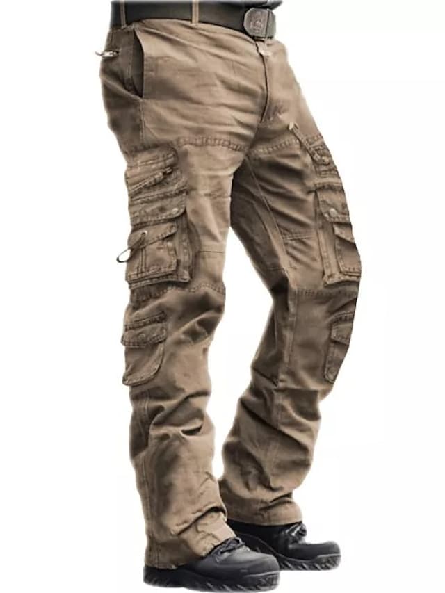 Men's Outdoor Vintage Washed Cotton Washed Multi-pocket Tactical Pants multi-pocket cargo pants straight pants trousers work pants khaki green