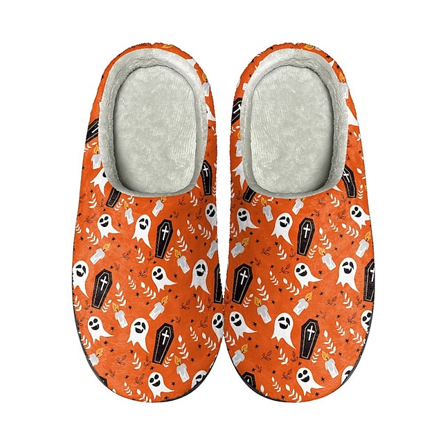 Halloween Bat Pumpkin Print Cotton Slippers Men and Women Flannel Couple Slippers