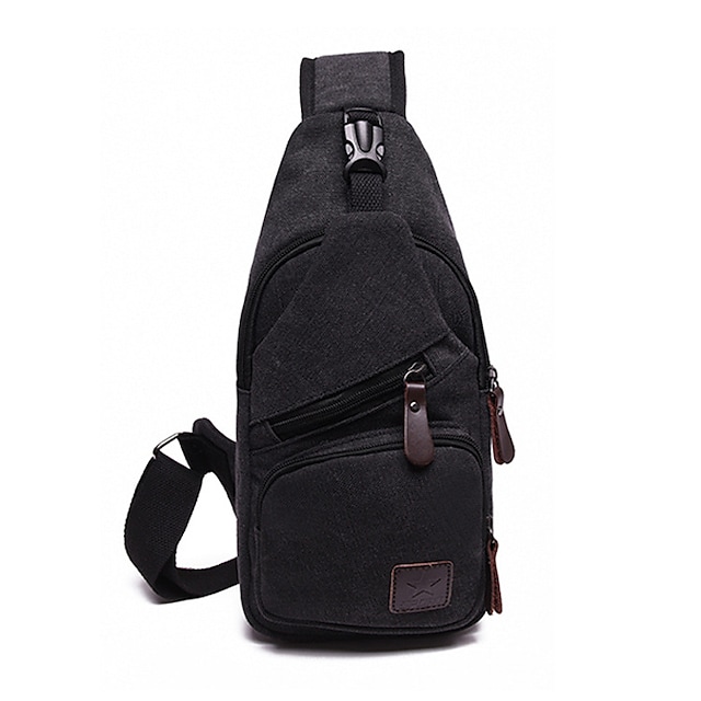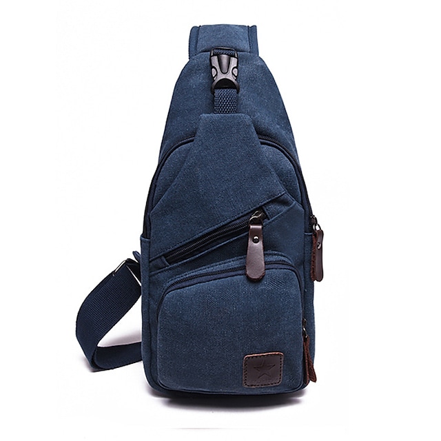 Men's 2022 Sling Shoulder Bag Canvas Zipper Plain Daily Sports Blue Black Army Green Khaki