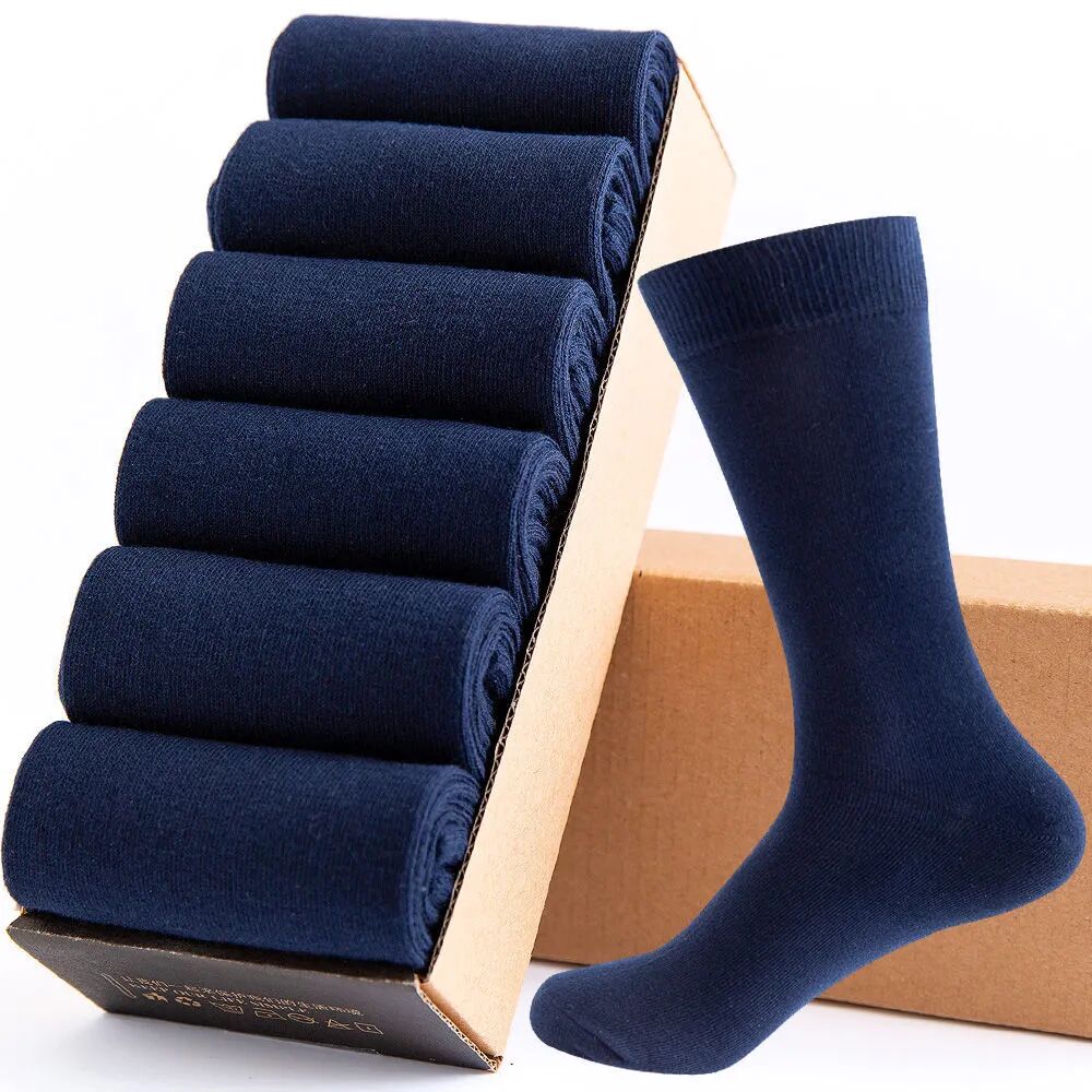 Men's 6 Pairs Socks Casual Socks Comfort Solid Colored Medium Fall & Winter Multi color Black 1 White