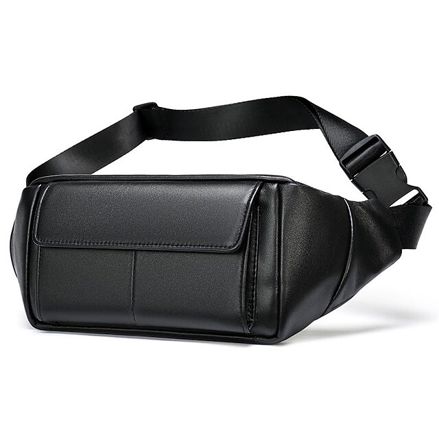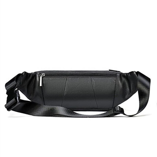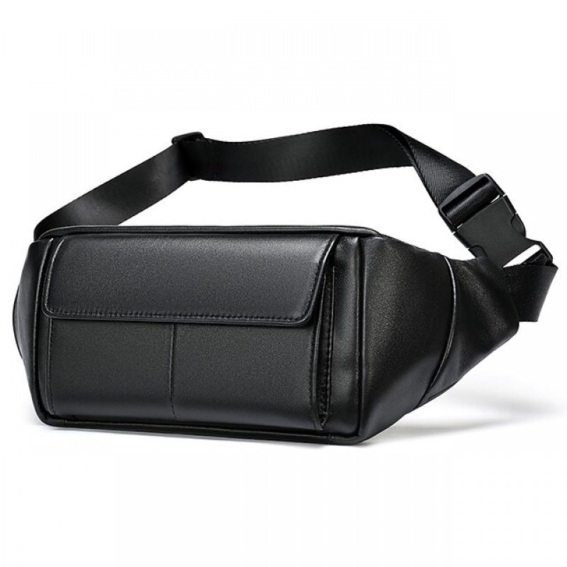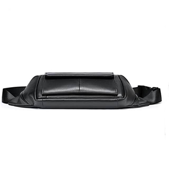 Men's Bum Bag Fanny Pack Wallet Sling Shoulder Bag Sheepskin Zipper Daily Black
