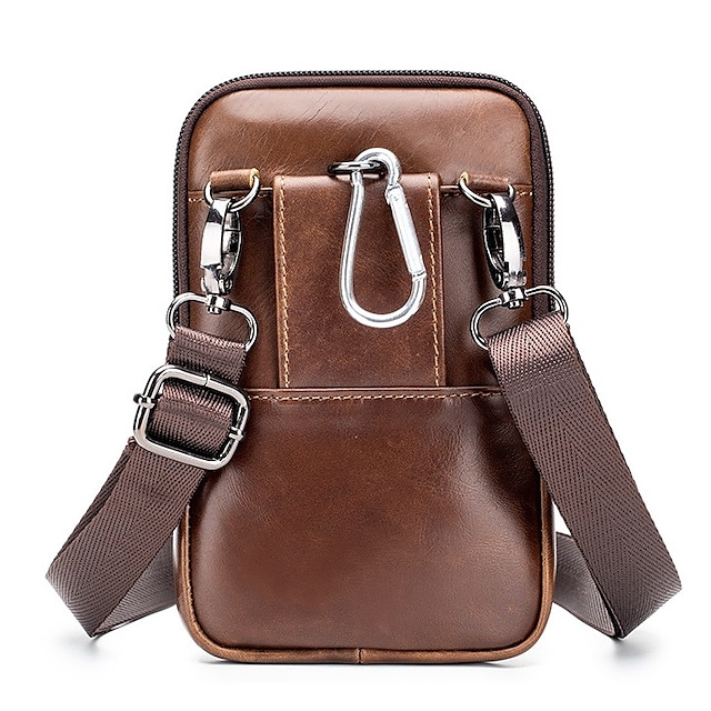 Men's Bum Bag Messenger Bag Fanny Pack Nappa Leather Crossbody Bag Zipper Holiday Outdoor Black Brown