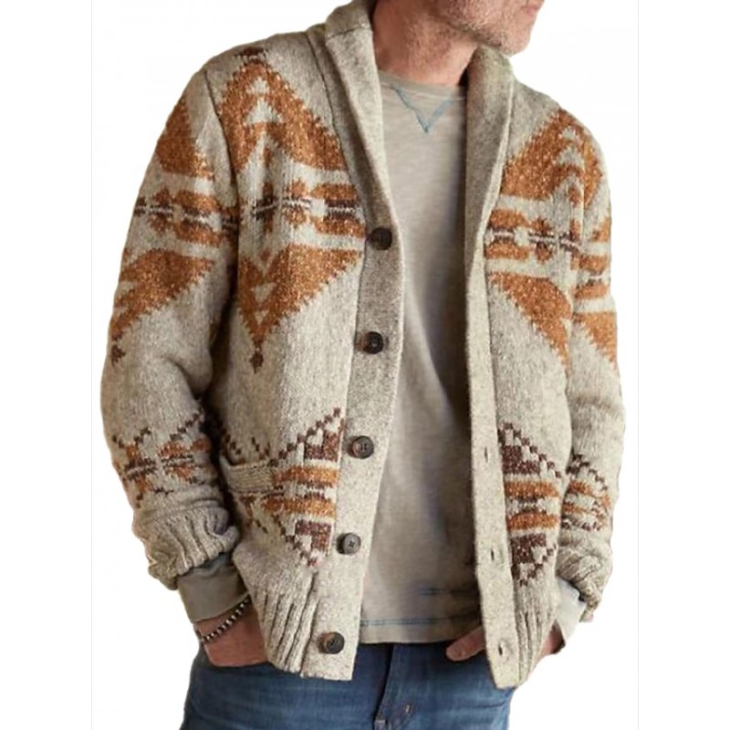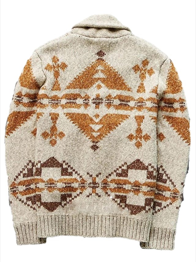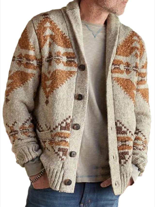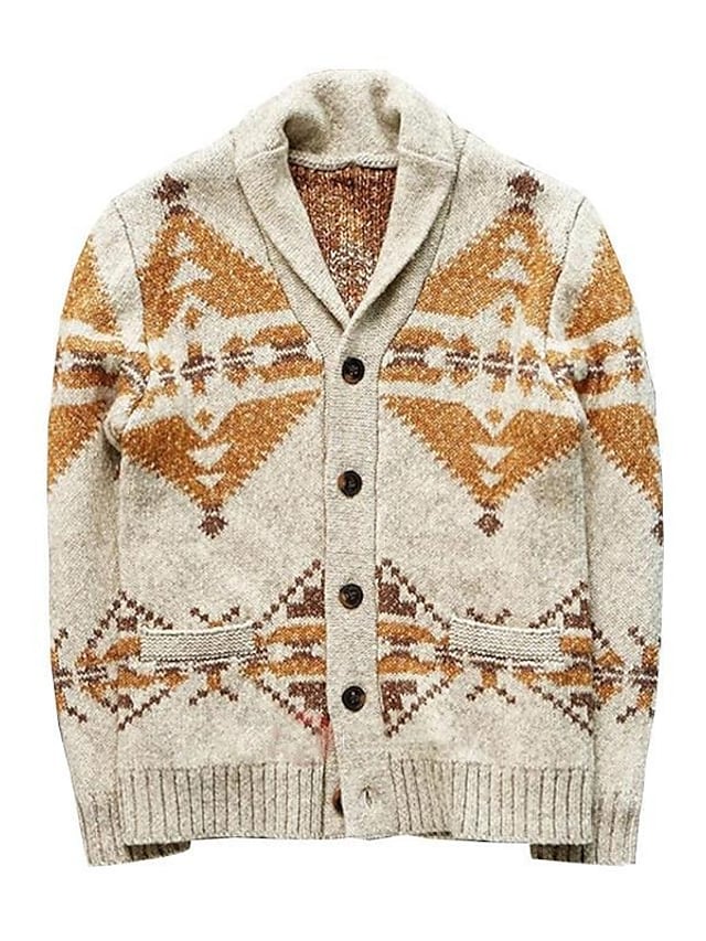 Men's Cardigan Jumper Knit Vintage Style Retro Jacquard Shirt Collar Stylish Sweaters Daily Wear Fall Winter Khaki M L XL / Long Sleeve / Long Sleeve / Geometric