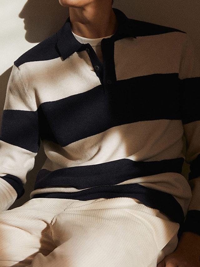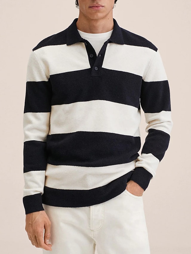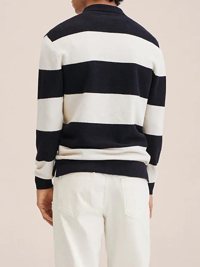 Men's Pullover Sweater Jumper Chunky Knit Cropped Knitted Striped Shirt Collar Stylish Basic Daily Holiday Fall Winter Navy Blue S M L / Long Sleeve / Long Sleeve / Weekend