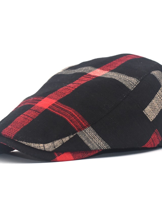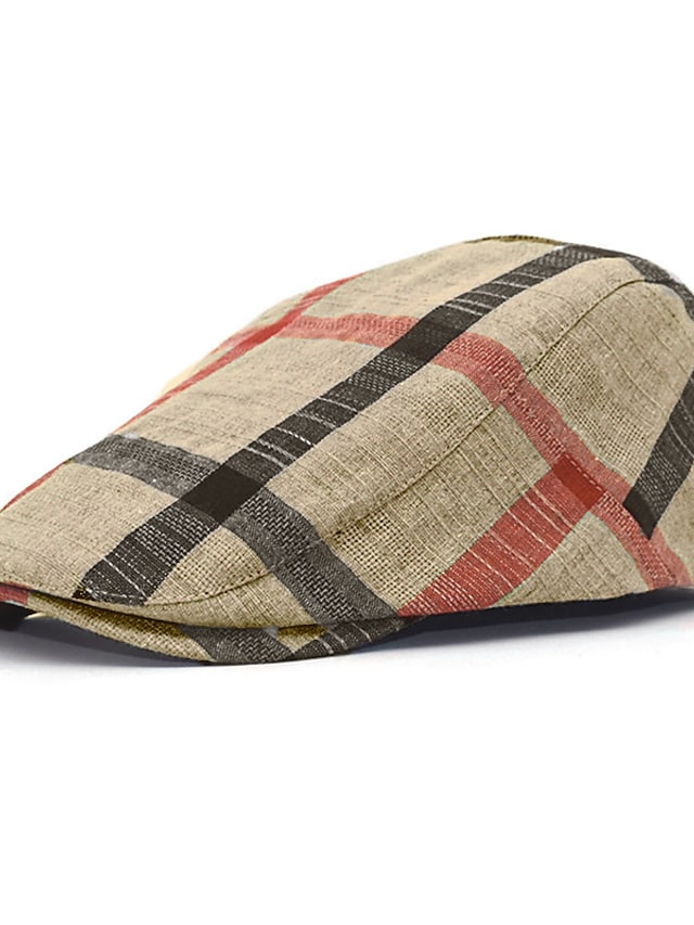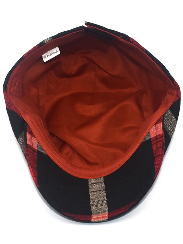 Men's Casual Flat Cap Daily Outdoor Two tone Plaid Beige Black Hat Sun Protection Comfort Warm / Fall / Winter / Spring / 1 PC