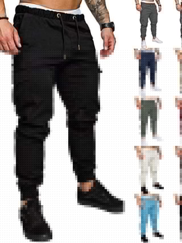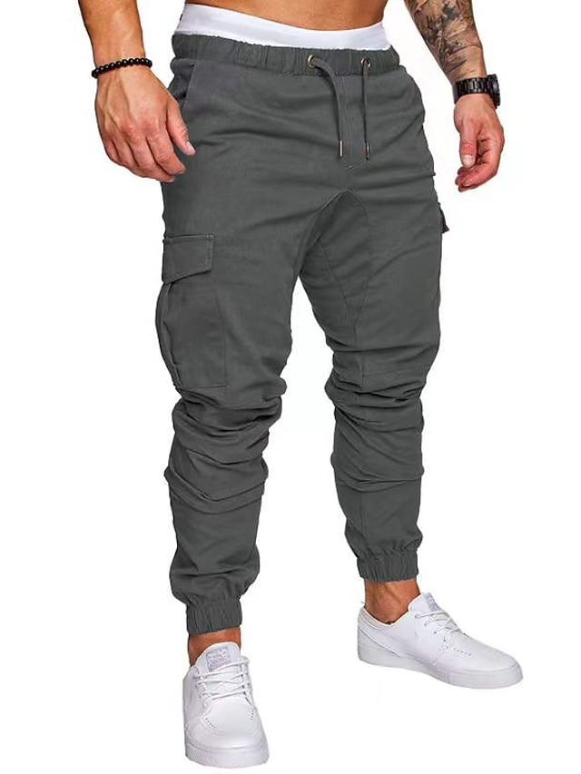 Men's Casual Streetwear Jogger Tactical Cargo Trousers Drawstring Full Length Pants Micro-elastic Solid Colored Cotton Blend Breathable Loose White Black Blue Wine Army Green S M L XL XXL