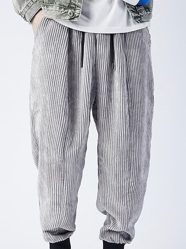 Men's Chinos Drawstring Elastic Waist Solid Color Breathable Lightweight Full Length Pants Casual Daily Cotton Blend Corduroy Casual Trousers Green Black Micro-elastic / Elasticity