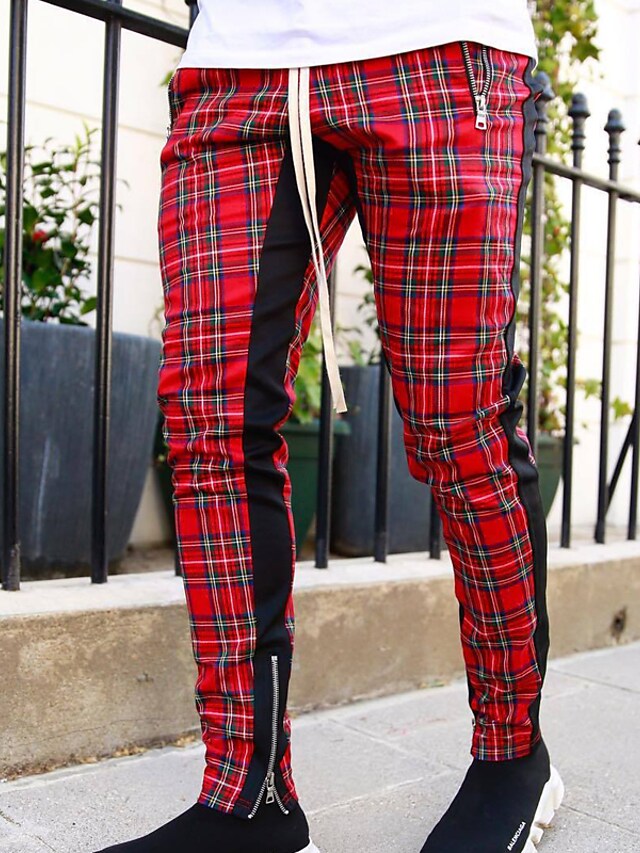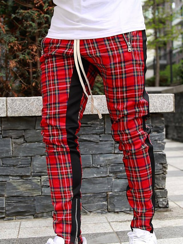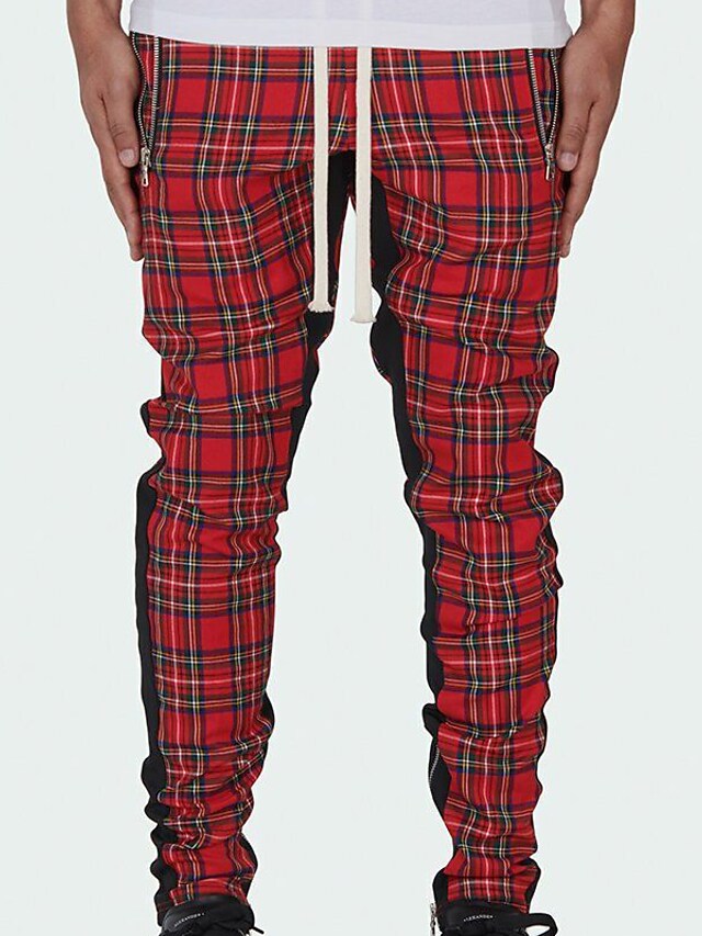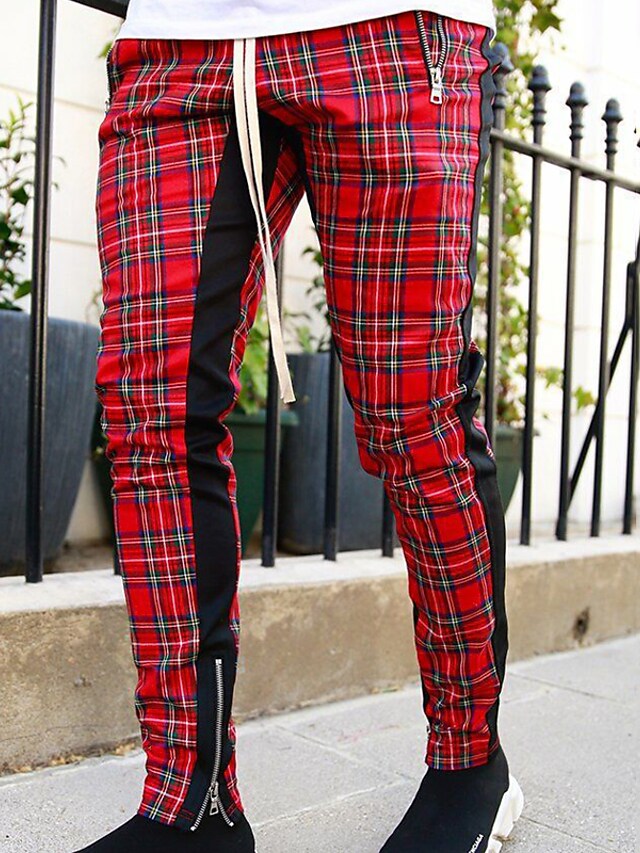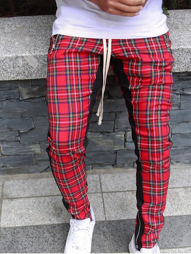 Men's Chinos Trousers Pocket Elastic Drawstring Design Lattice Breathable Soft Pants Casual Daily Fashion Streetwear Red Micro-elastic