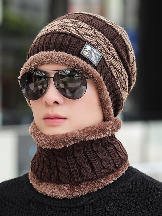 Men's Classic & Timeless Beanie / Slouchy Dailywear Outdoor Knitted Fleece Pure Color Hat Warm / Winter