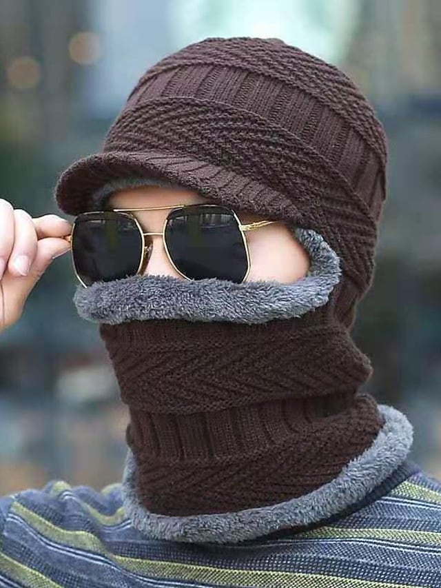 Men's Classic & Timeless Beanie / Slouchy Outdoor Knitted Fleece Stripe Hat Windproof Warm / Fall / Winter