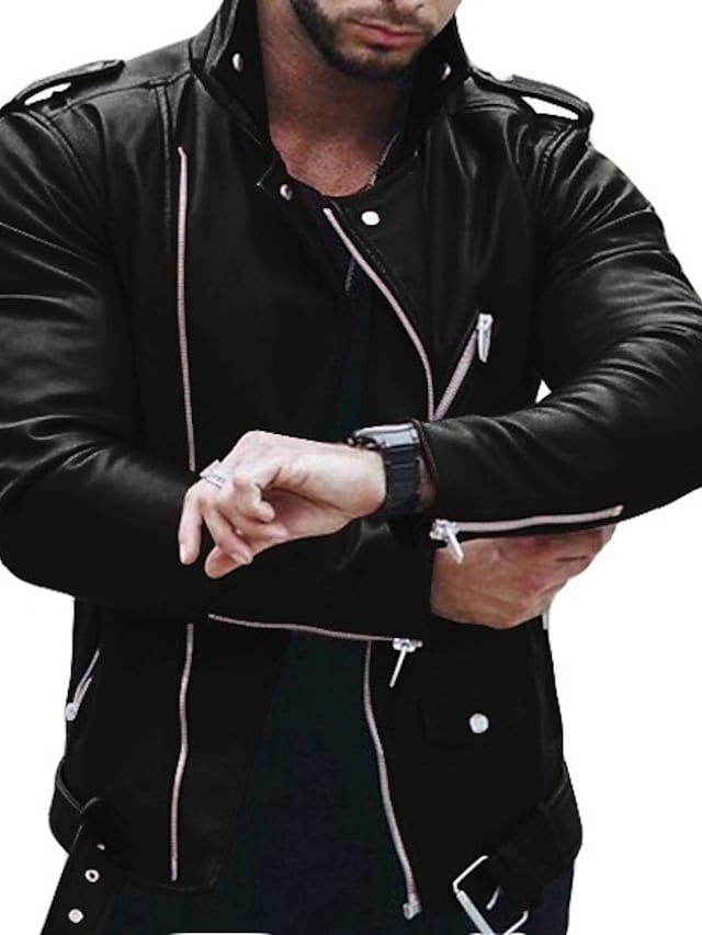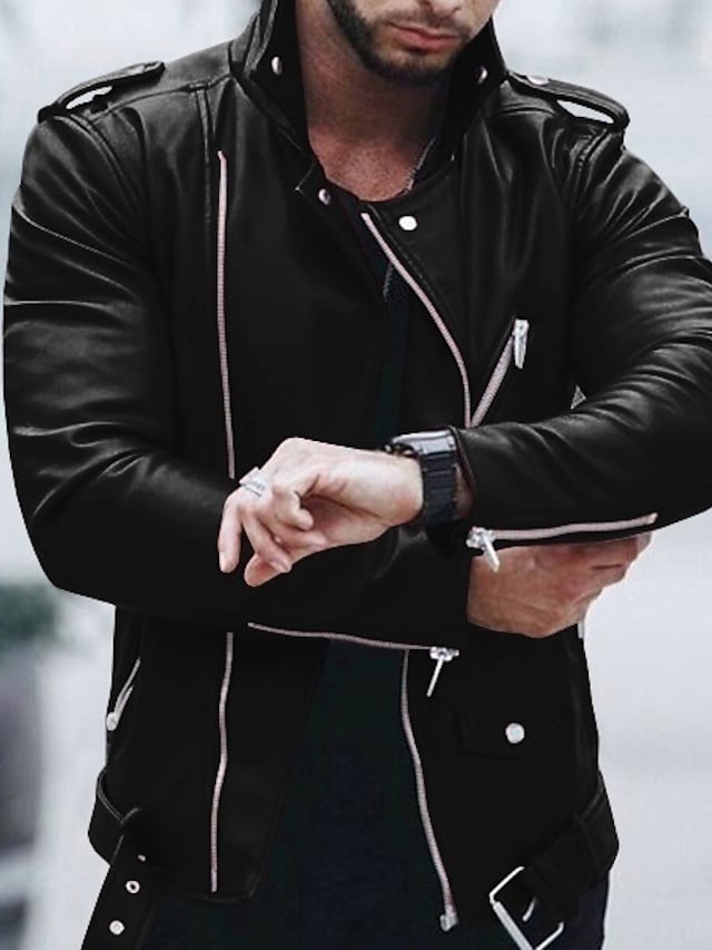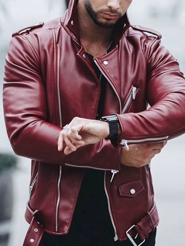 Men's Jacket Outdoor Street Daily Spring Fall Regular Coat Regular Fit Thermal Warm Windproof Breathable Streetwear Sporty Casual Jacket Long Sleeve Solid Color Pocket Black Wine / Faux Leather