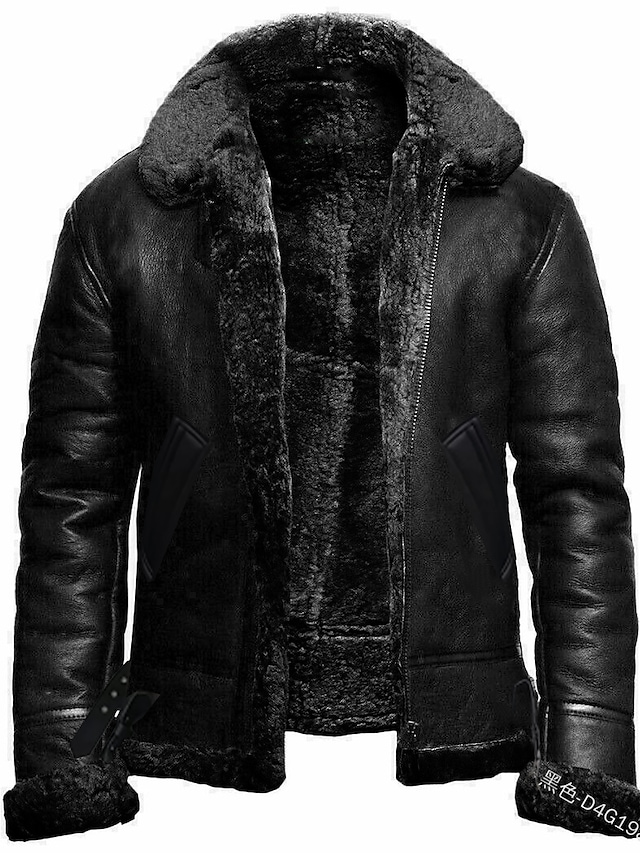 Men's Jacket Outdoor Street Daily Winter Regular Coat Regular Fit Thermal Warm Windproof Breathable Streetwear Sporty Casual Jacket Long Sleeve Solid Color Pocket Black / Faux Leather
