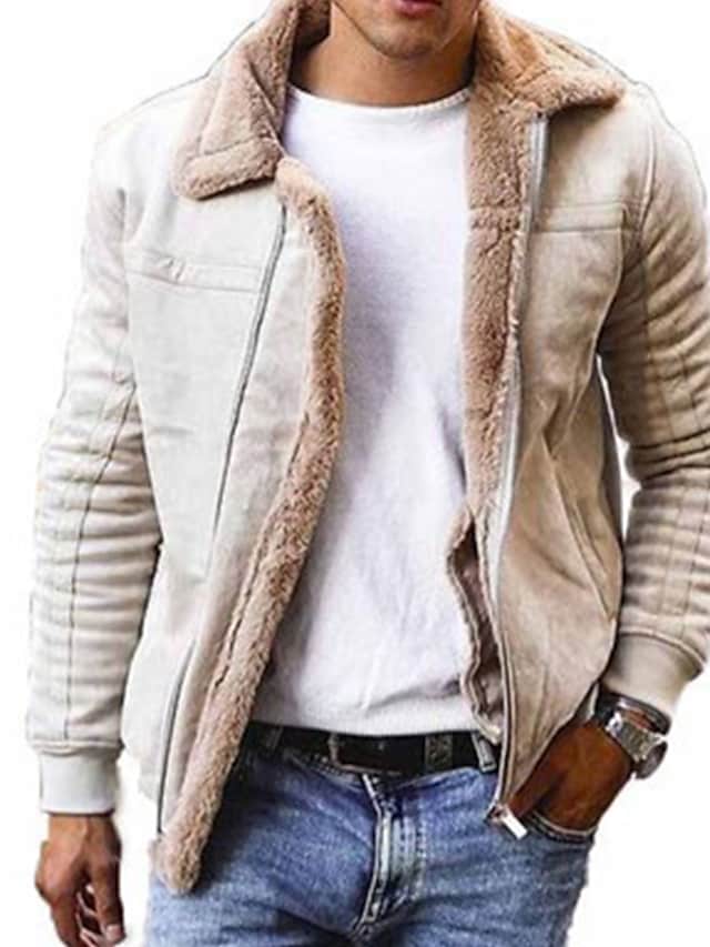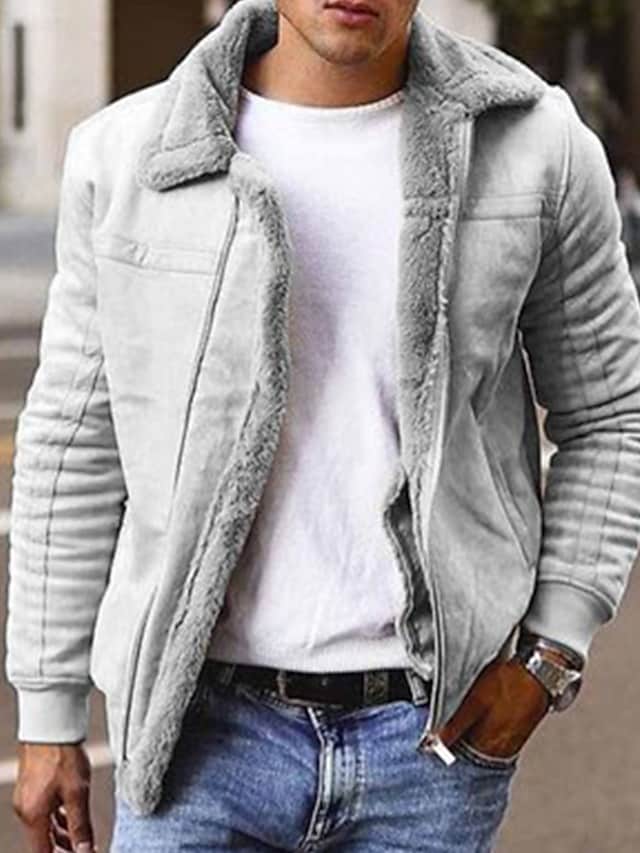 Men's Jacket Outdoor Street Daily Winter Regular Coat Regular Fit Thermal Warm Windproof Breathable Streetwear Sporty Casual Jacket Long Sleeve Solid Color Pocket Black Blue Gray / Faux Leather