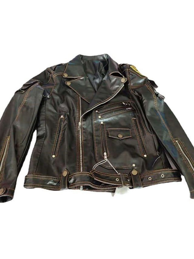 Men's Jacket Regular Pocket Coat Black Sporty Street Fall Zipper Turndown Regular Fit L XL XXL 3XL 4XL 5XL / Faux Leather / Long Sleeve / Machine wash / Hand wash / Casual