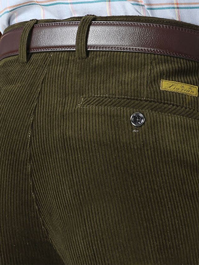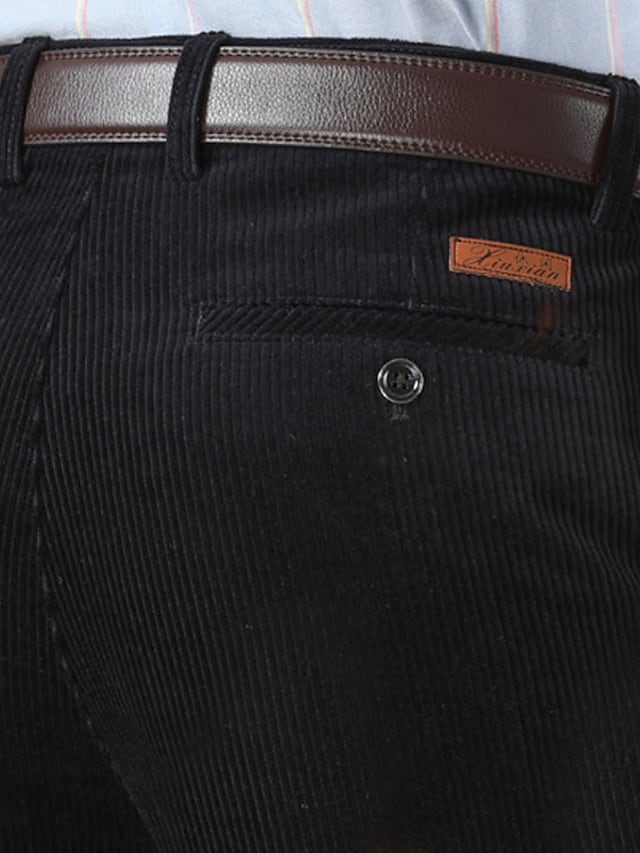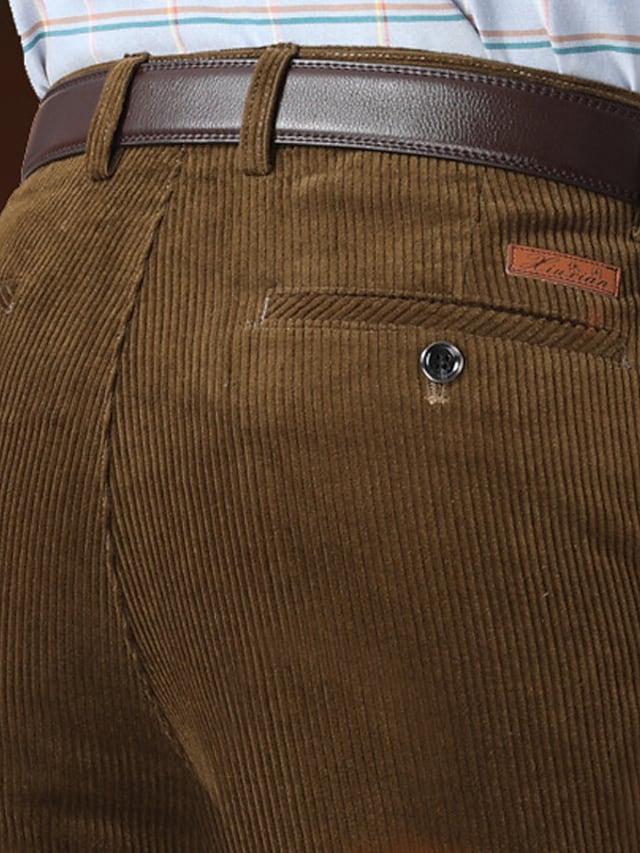 Men's Dress Pants Pocket Solid Color Breathable Outdoor Full Length Pants Business Casual Corduroy Casual Trousers Black Khaki Micro-elastic