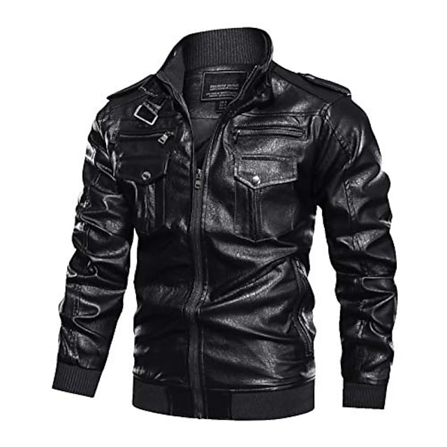 Men's Faux Leather Jacket Motorcycle Jackets Black Bomber Jacket Casual Daily Outdoor Work Black Brown Fall Winter Comfortable
