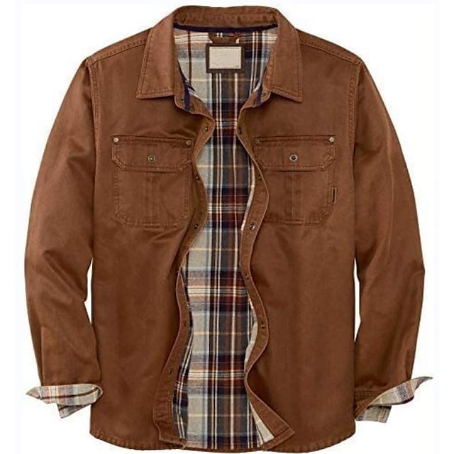 Men's Flannel Shirt Shirt Jacket Solid Color Turndown Army Green Brown Coffee Long Sleeve Street Daily Button-Down Tops Fashion Casual Comfortable / Beach