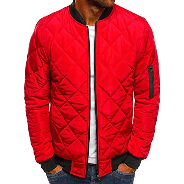 mens flight bomber jacket diamond quilted varsity jackets winter warm padded coats outwear red