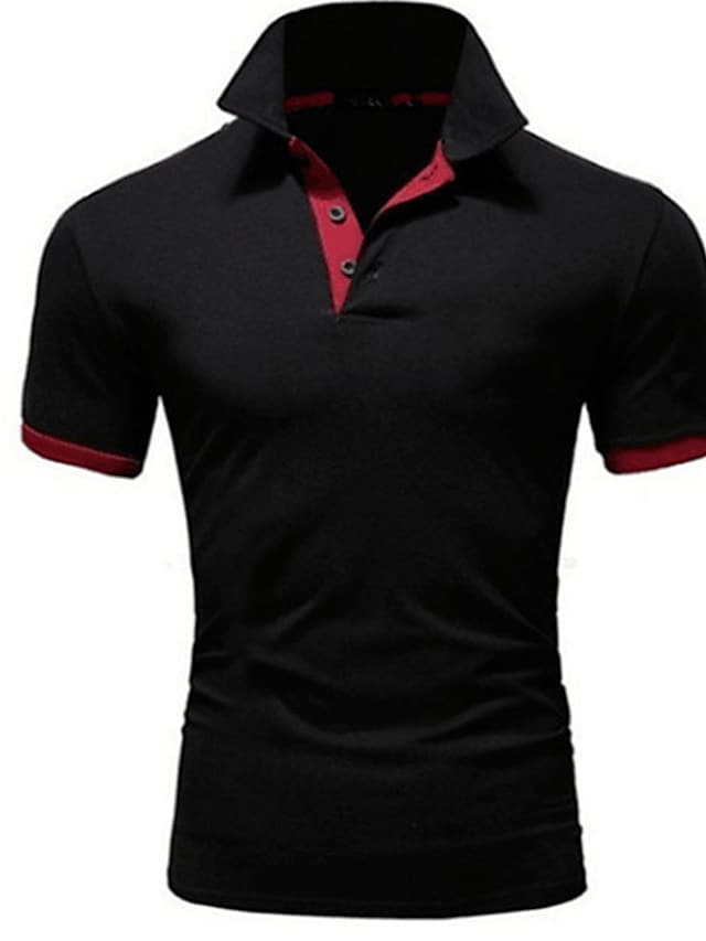 Men's Golf Shirt Color Block Turndown Daily Casual Street Sports Button-Down Short Sleeve Tops Classic Black / Red White Black / Summer Comfortable Quick dry