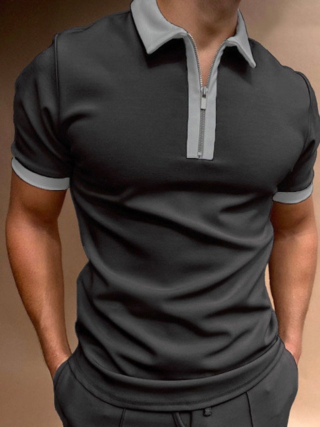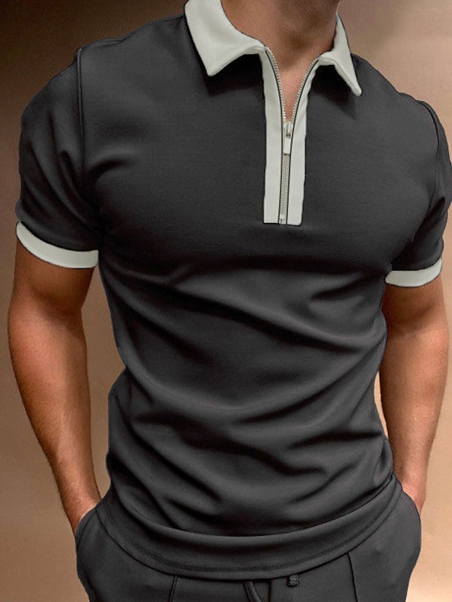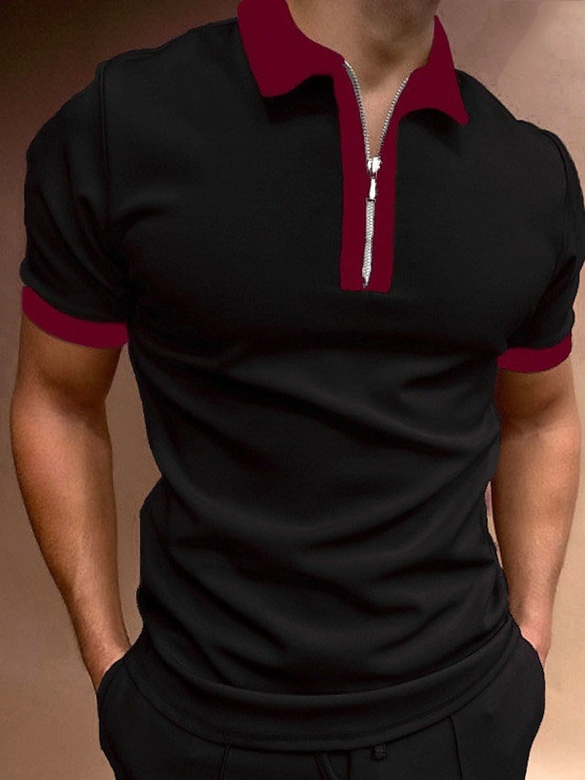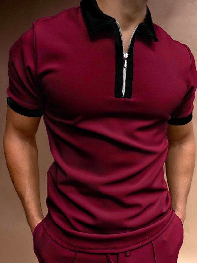 Men's Golf Shirt Solid Color Collar Wine White Black Gray Short Sleeve Outdoor Street Zipper Tops Fashion Casual Breathable Comfortable