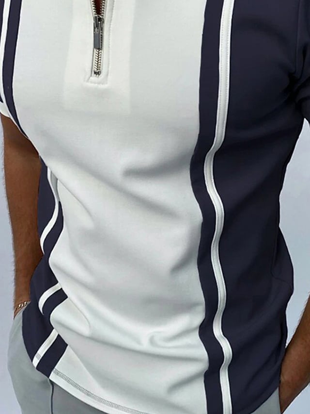 Men's Golf Shirt Tennis Shirt Striped Turndown Casual Daily Street Zipper Print Short Sleeve Tops Fashion Comfortable Sports Gray Navy Blue Summer Shirts Holiday Vacation Quick Dry
