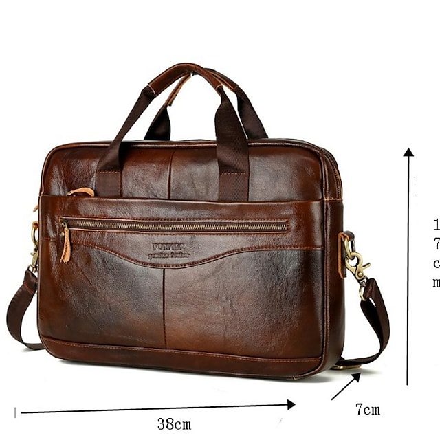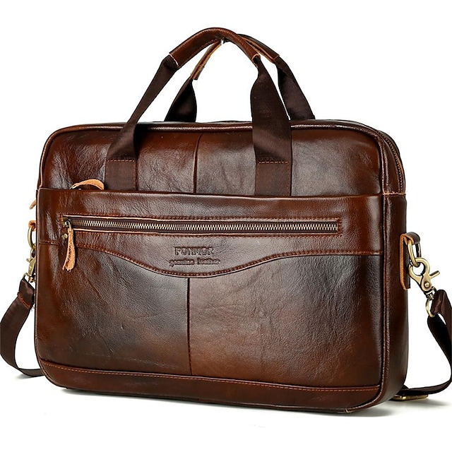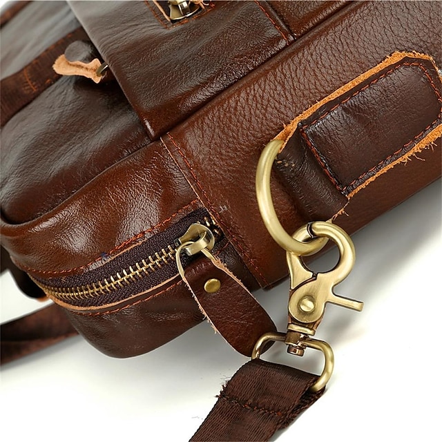 Men's Handbags Briefcase Top Handle Bag Nappa Leather Cowhide Zipper Solid Color Daily Formal Office & Career Dark Brown