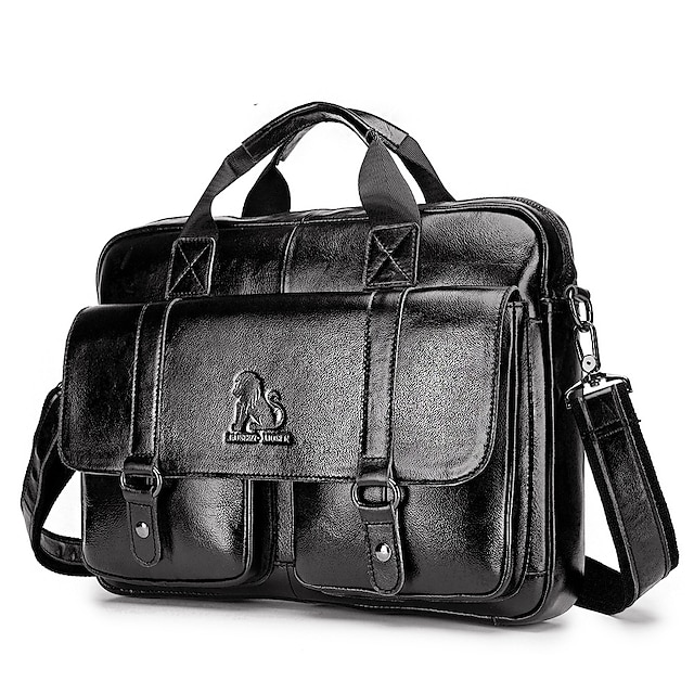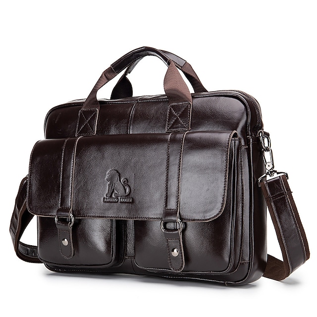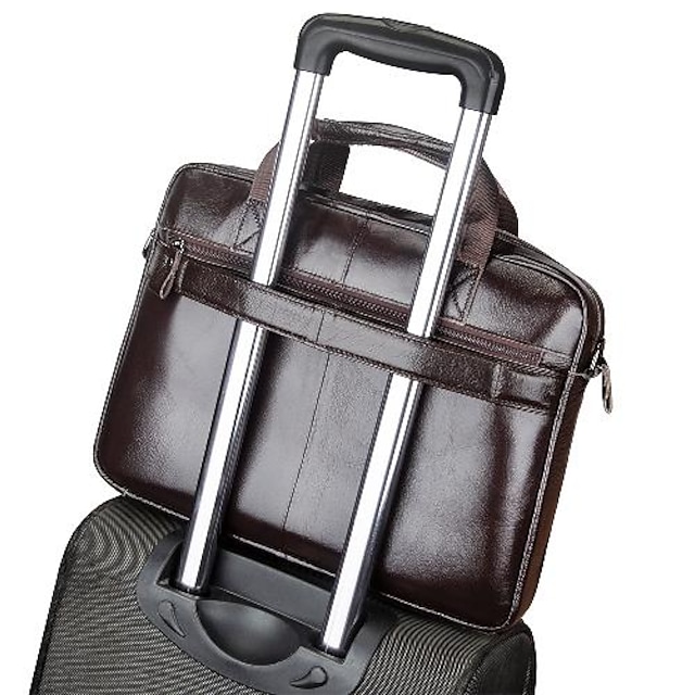 Men's Handbags Shoulder Messenger Bag Laptop Bag Briefcase Nappa Leather Belt Zipper Formal Office & Career Light Coffee Black / Top Handle Bag
