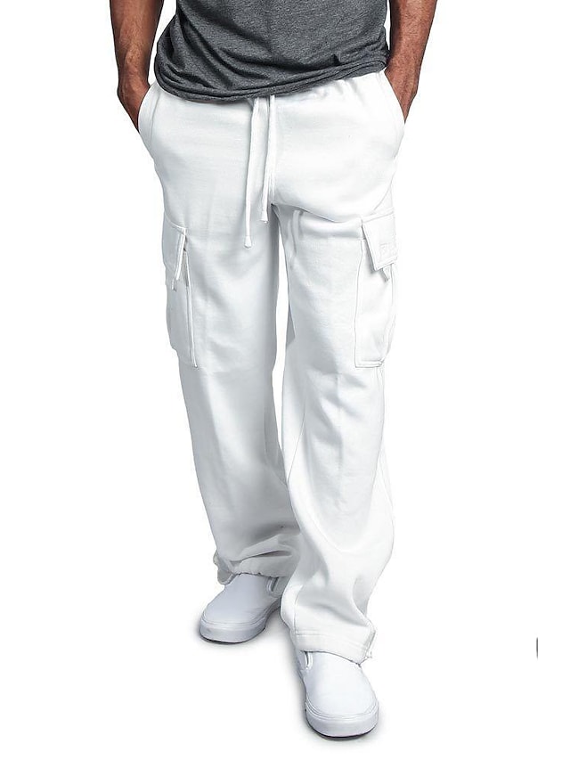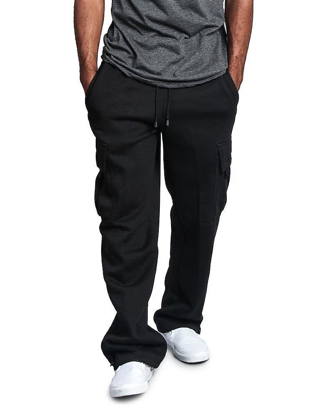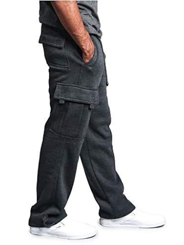 Men's Heavyweight Fleece Cargo Pants Sweatpants Men Loose Sports Trousers Plus Size Cargo Workout Straight Leg Pants