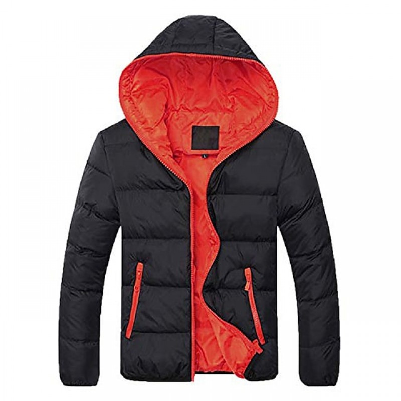 men's hooded winter coat warm puffer jacket thicken cotton mountain waterproof ski jacket windproof warm snow coat(orange,medium)