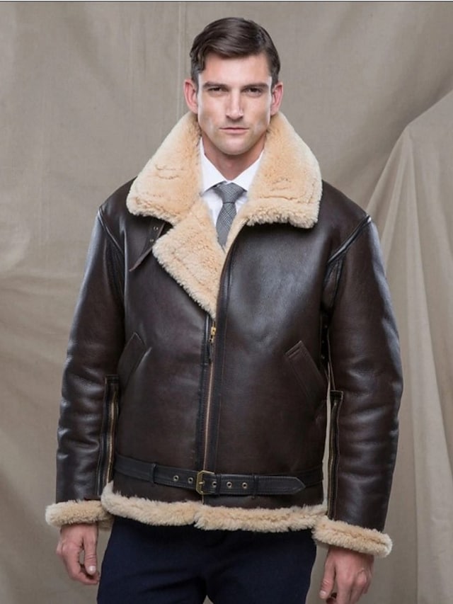 Men's Jacket Outdoor Street Daily Fall Winter Regular Coat Regular Fit Thermal Warm Windproof Breathable Streetwear Sporty Casual Jacket Long Sleeve Solid Color Pocket Brown / Faux Leather