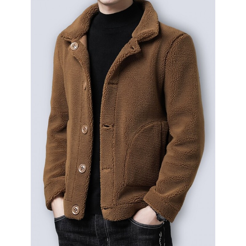 Men's Jacket Polar Fleece Street Daily Fall Winter Regular Coat Regular Fit Thermal Warm Windproof Warm Casual Military Style Jacket Long Sleeve Solid Color Pocket Black Brown / Faux Leather