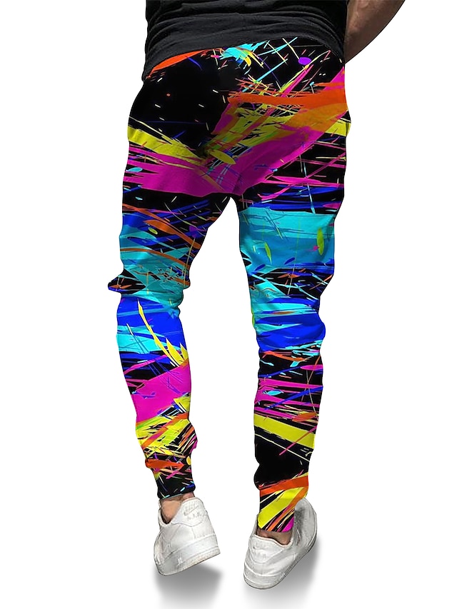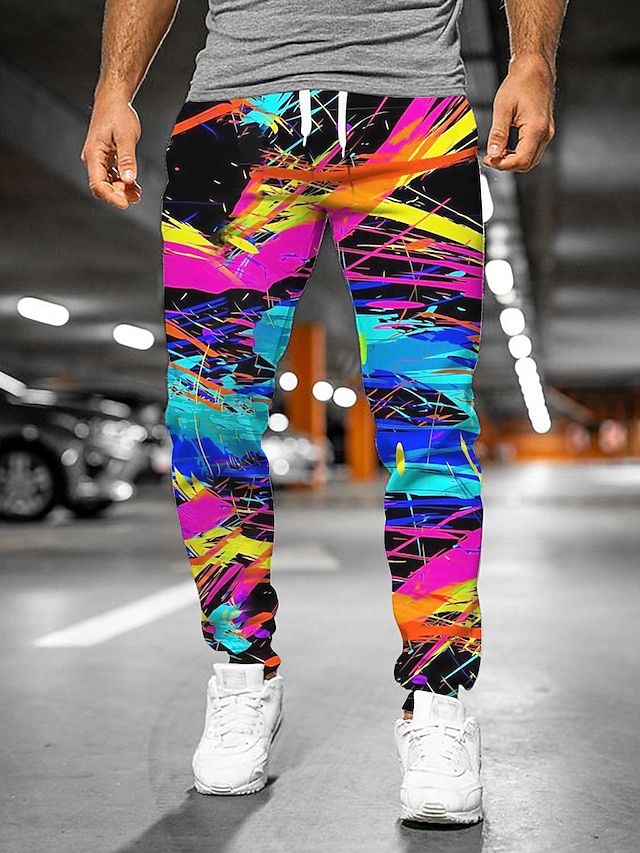 Men's Joggers Sweatpants Trousers Drawstring 3D Print Elastic Waist Graphic Color Block Abstract Outdoor Sports Full Length Pants Casual Daily Designer Casual / Sporty Rainbow Micro-elastic