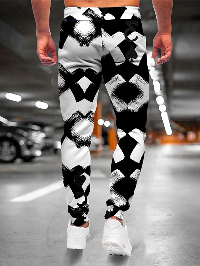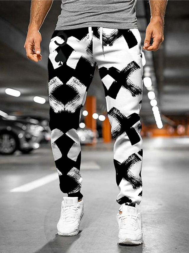 Men's Joggers Sweatpants Trousers Drawstring 3D Print Elastic Waist Graphic Color Block Outdoor Sports Full Length Pants Casual Daily Designer Casual / Sporty Black Micro-elastic / Elasticity