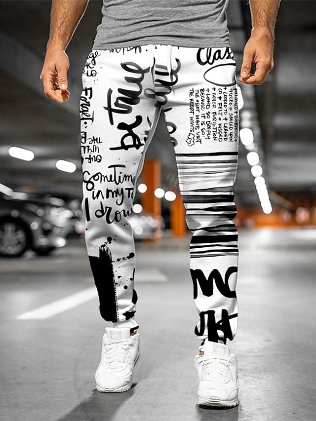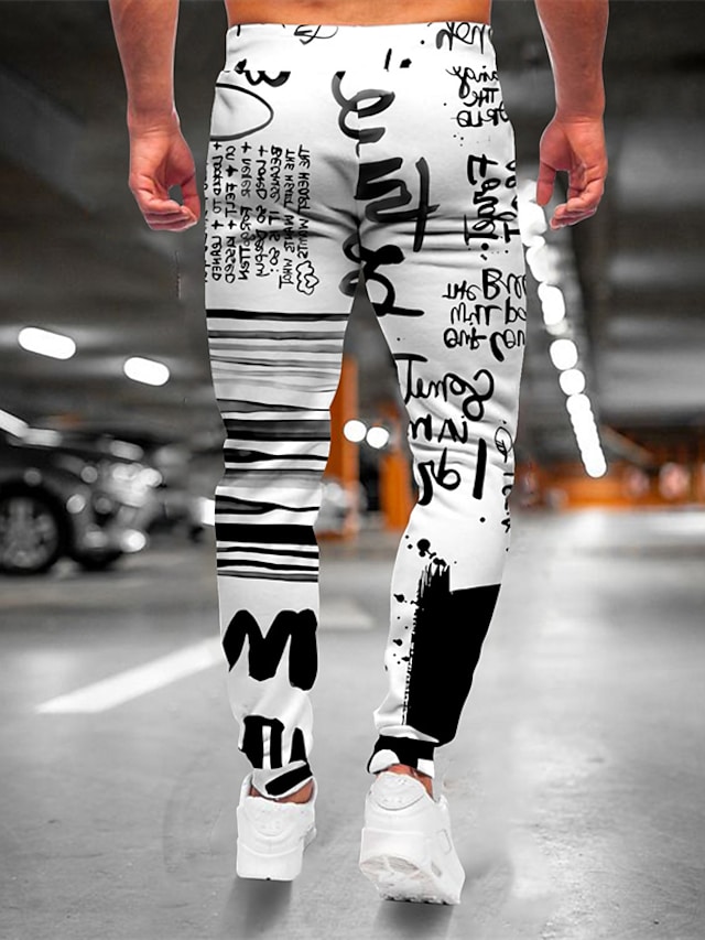 Men's Joggers Sweatpants Trousers Drawstring 3D Print Elastic Waist Graphic Letter Outdoor Sports Full Length Pants Casual Daily Designer Casual / Sporty Black / White Micro-elastic / Elasticity