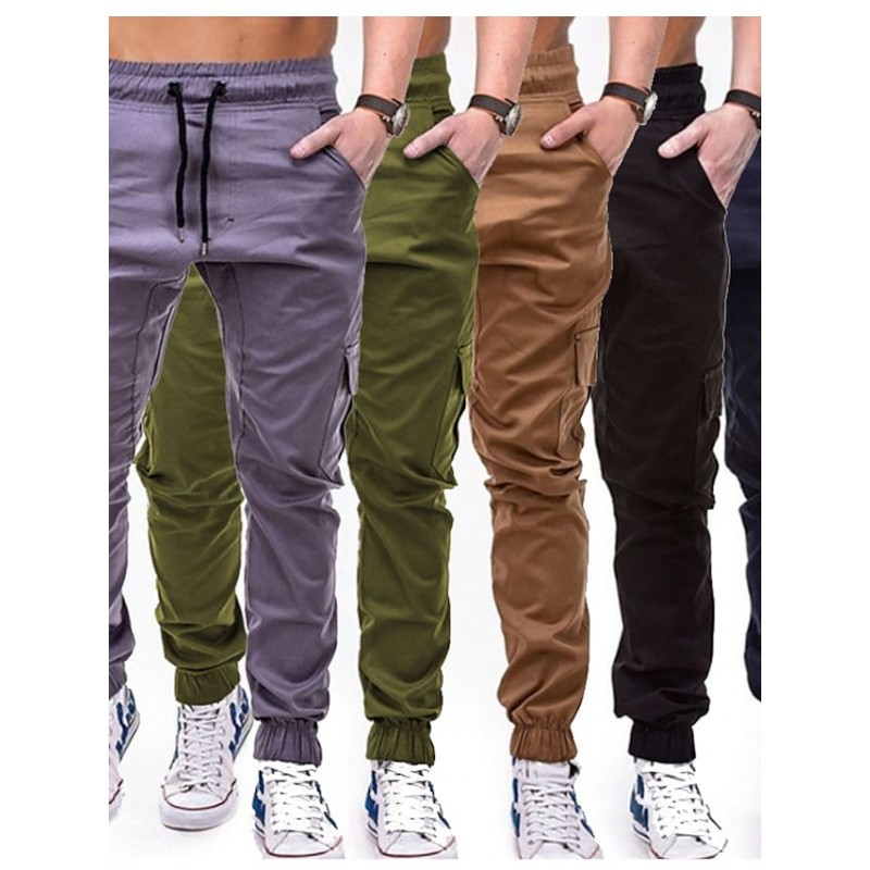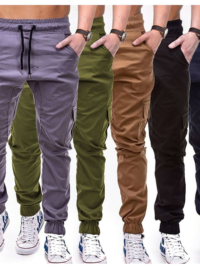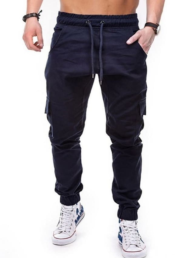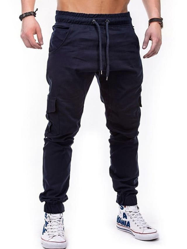 Men's Joggers Sweatpants Trousers Pocket Elastic Drawstring Design Solid Color Breathable Soft Pants Casual Daily Cotton Fashion Streetwear Black Gray Micro-elastic / Elasticity