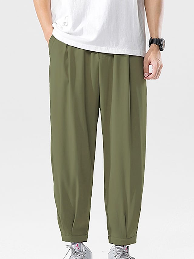 Men's Joggers Sweatpants Trousers Pocket Elastic Drawstring Design Solid Color Breathable Soft Pants Casual Daily Fashion Streetwear Green Black / Elasticity