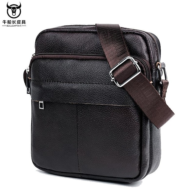 Men's Leather Bag Bum Bag Crossbody Bag Cowhide Zipper Solid Color Outdoor Daily Office & Career