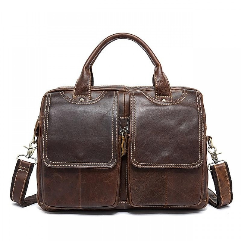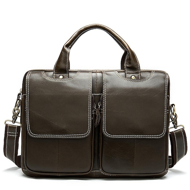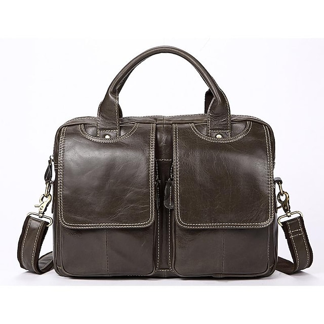 Men's Leather Bag Work Bag Messenger Bag Briefcase Nappa Leather Cowhide Zipper Solid Color Daily Office & Career