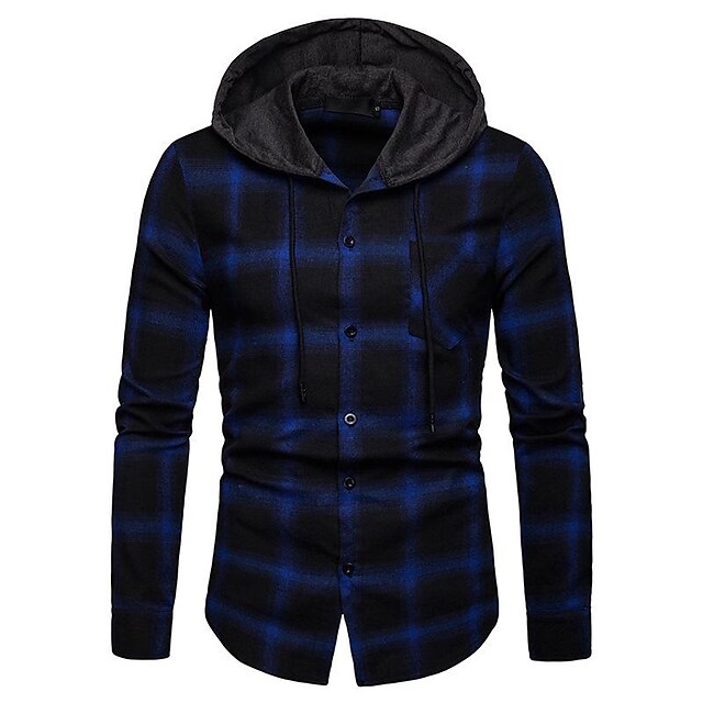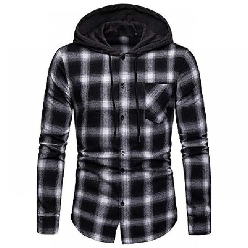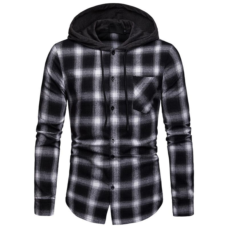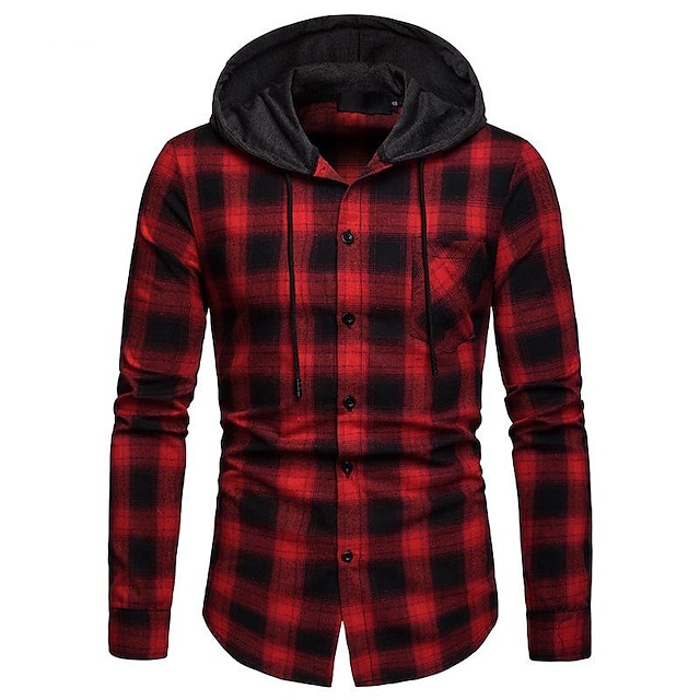 men's long sleeve hoodie plaid flannel button down shirt