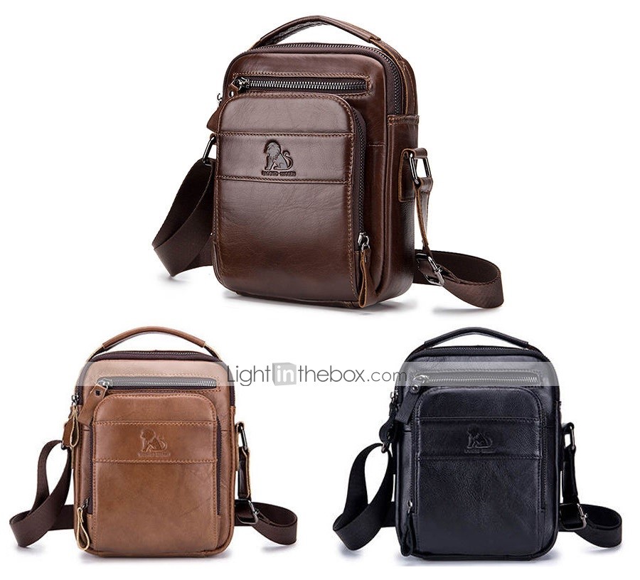 Men's Messenger Bag Shoulder Messenger Bag Crossbody Bag Cowhide Pattern / Print Solid Color Daily Office & Career Black Brown Coffee